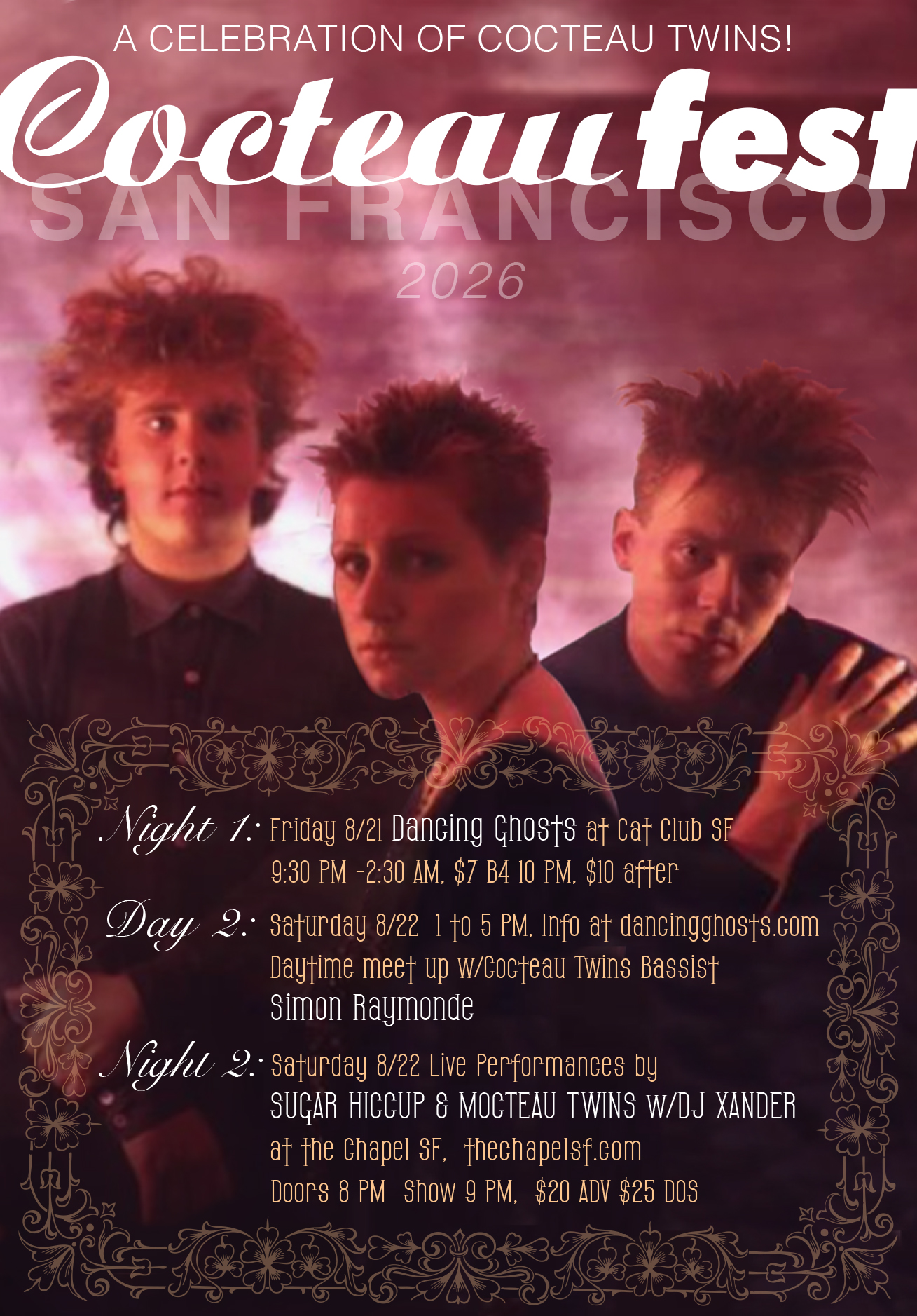 Bands you are likely to hear at DANCING GHOSTS include: Ash Code, Attrition, Azam Ali, Alien Sex Fiend, Austra, Bauhaus, Bel Canto, the Birthday Party, Boy Harsher, Buzz Kull, Cabaret Voltaire, the Chameleons, Chelsea Wolfe, Chris & Cosey, Christian Death, Clan of Xymox, Cocteau Twins, Coil, Cranes, the Creatures, the Cure, Dead Can Dance, Delerium, Depeche Mode, Die Form, Drab Majesty, Echo & the Bunnymen, Einstürzende Neubauten, Fad Gadget, Faith and the Muse, Front Line Assembly, Front 242, the Frozen Autumn, the Glove, IAMX, Joy Division, Killing Joke, KMFDM, Kraftwerk, Lebanon Hanover, Linea Aspera, London After Midnight, Lords of the New Church, Love and Rockets, Massive Attack, Ministry, Peter Murphy, New Order, Nick Cave & the Bad Seeds, Nitzer Ebb, Gary Numan, Pink Turns Blue, Portishead, Sex Gang Children, She Past Away, Sisters of Mercy, Siouxsie & the Banshees, Skinny Puppy, Sneaker Pimps, Soft Cell, Specimen, Strawberry Switchblade, Switchblade Symphony, This Mortal Coil, Tones on Tail, Twin Tribes, Virgin Prunes, Xmal Deutschland, and more!